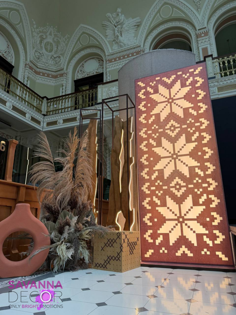 Основний фон створює 3Д ефект за рахунок вигину з однієї частини. Загальний розмір фотозони 2,5*4,5м